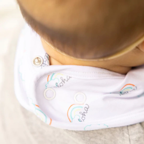 また下の生地は、吸水性の高いタオル素材なので、よだれの多いベビーでもサラッとした肌触りを保つことができます。